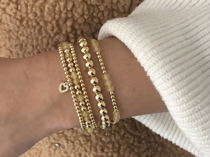 Armband Faylinn met gele chalcedoon en real gold plated balletjes