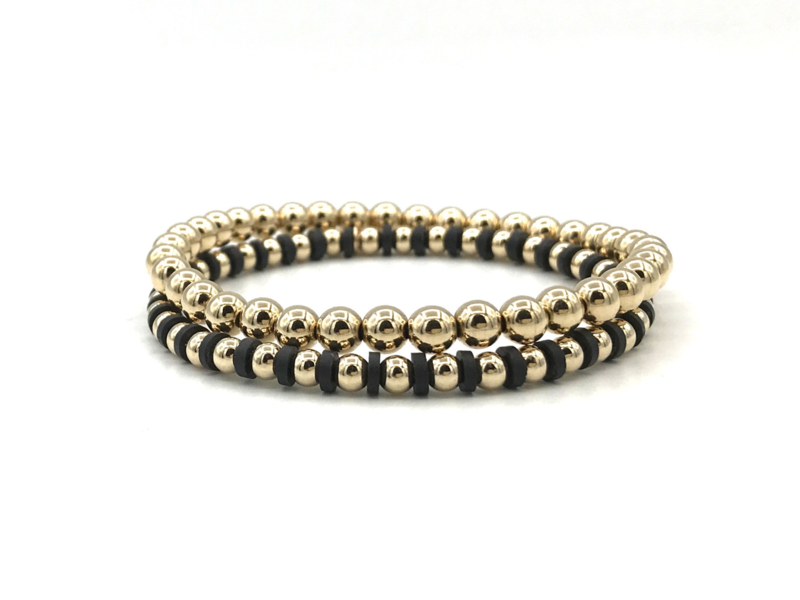 MATERIAAL: real gold plated balletjes die NIET VERKLEUREN met zwarte schijfjes op hoogwaardig elastisch koord geregen. Deze stretch armband is 100% nikkelvrij