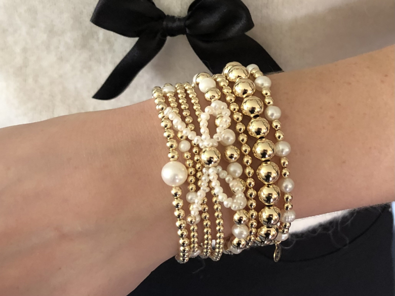 Armbanden set 8 met Bow parel en basis armband 6 mm real gold plated balletjes LAATSTE SETJE