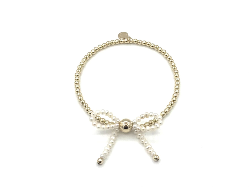 Artikelnummer: Set 8MATERIAAL: parel strikje en real gold plated balletjes die NIET VERKLEUREN op hoogwaardig elastisch koord geregen. Deze armband is 100% nikkelvrij! Dit is het laatste setje met een parelstrikje!